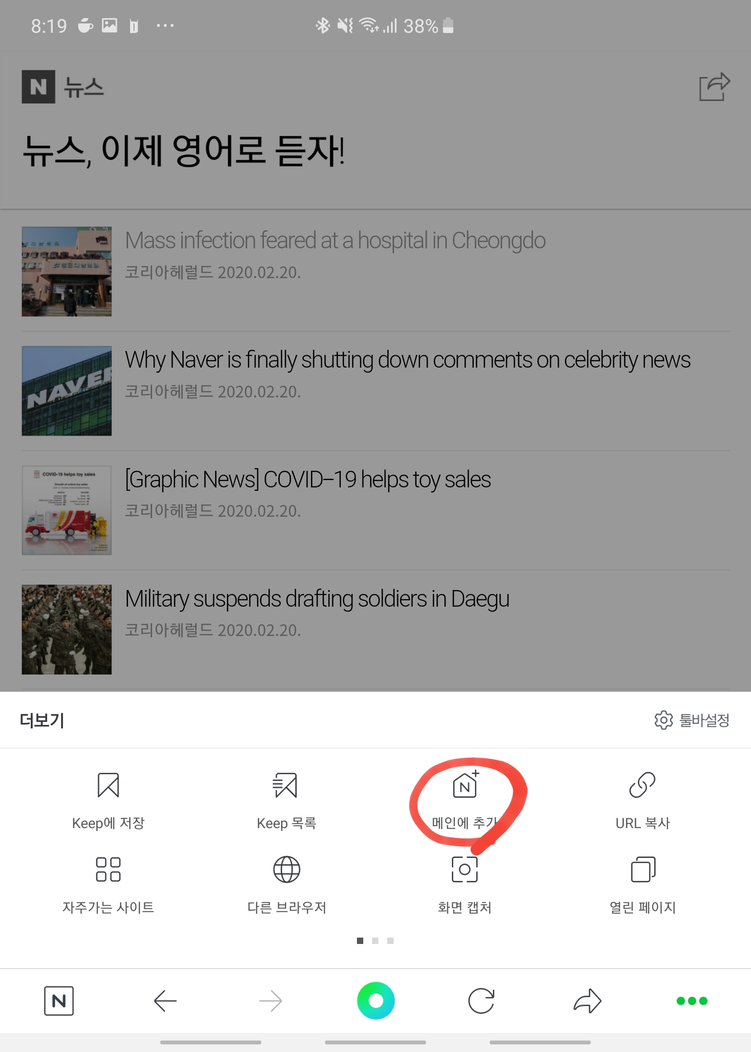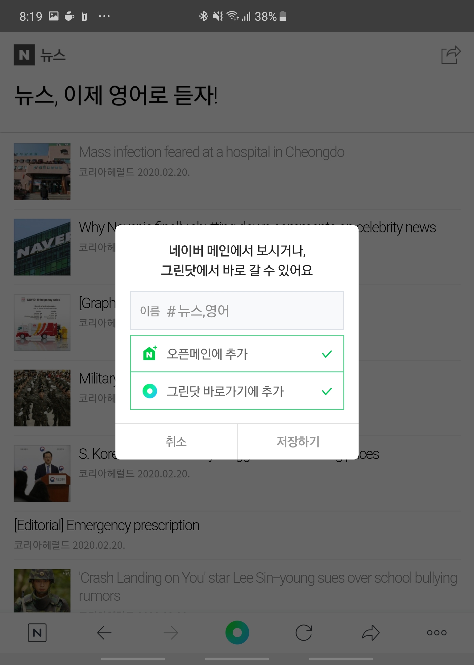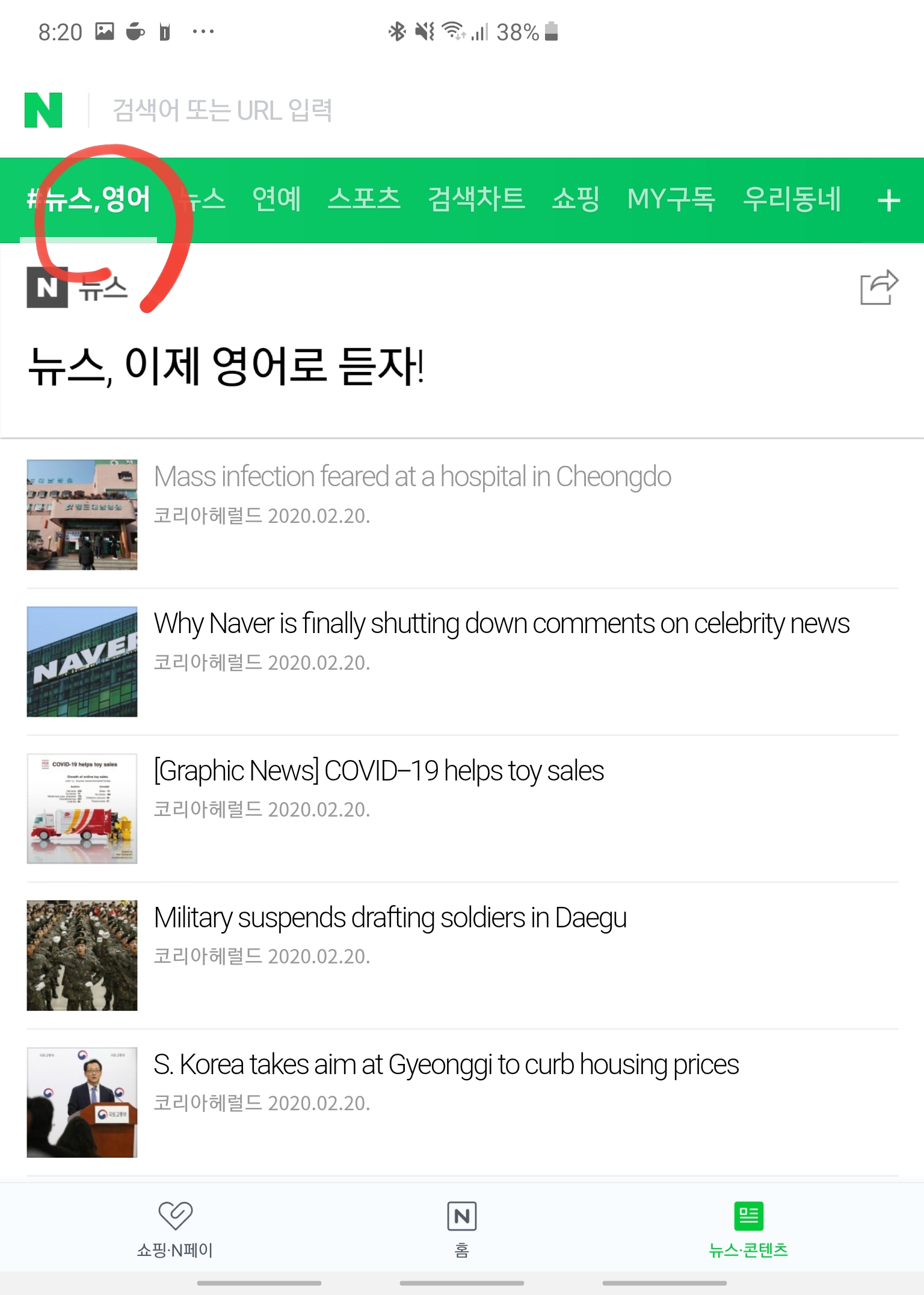 코리안해럴드 등 영어 뉴스 기사를 제공하는 네이버의 서비스 입니다.