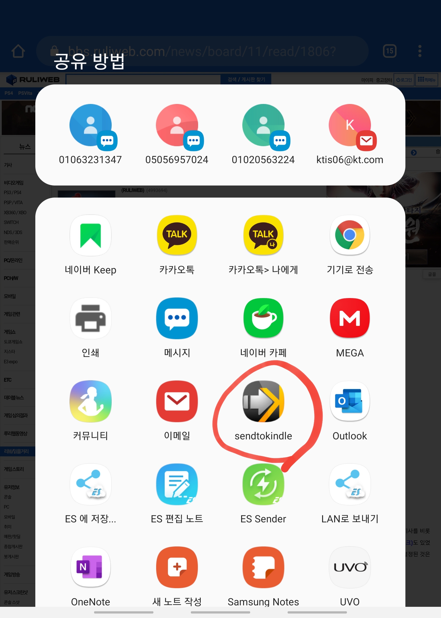 어플 리스트에 나오는 Sendtokindle을 선택합니다.
