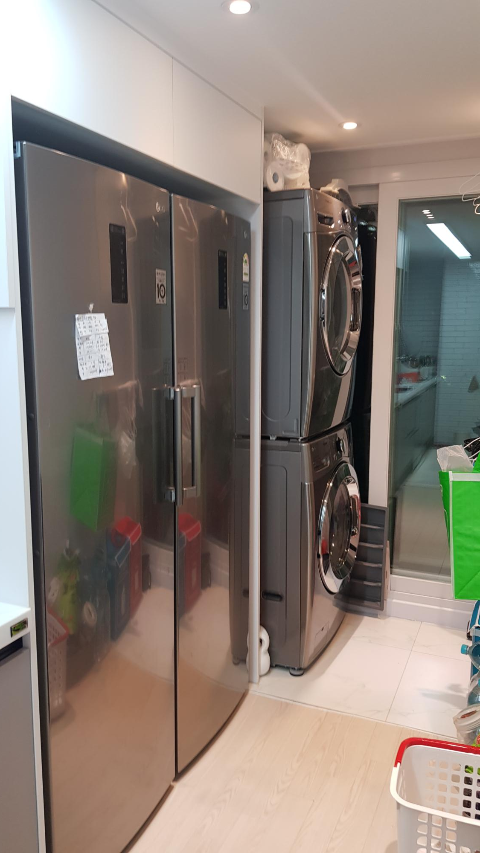 정확한 공간 마련을 위해 당연히, 세탁기와 건조기 모델을 미리 골라놓고 주문했습니다.