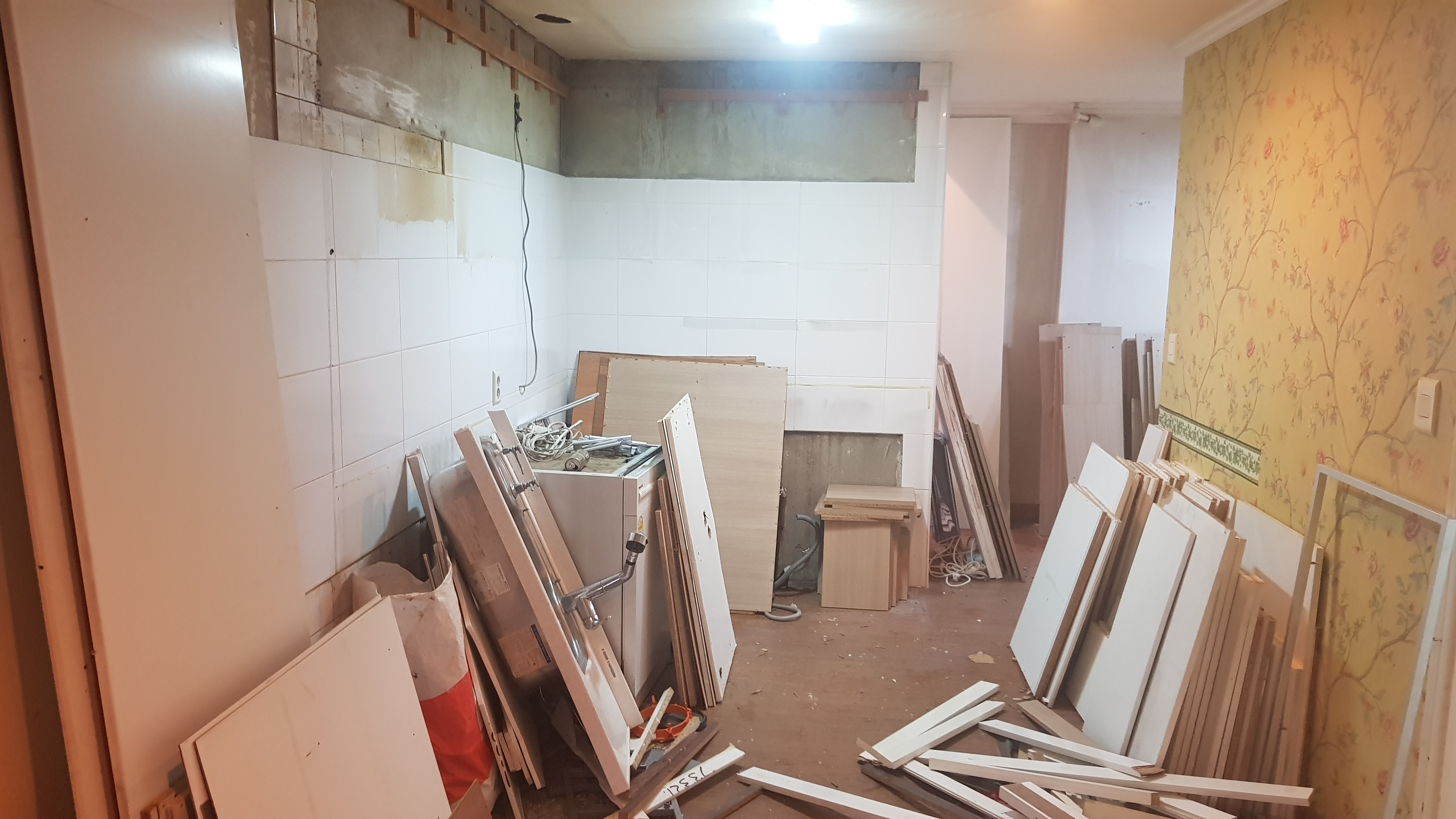 확장해서, 이쪽으로 세탁실을 구성하기로합니다. 바닥도 새로운 타일로 깔리게 됩니다.