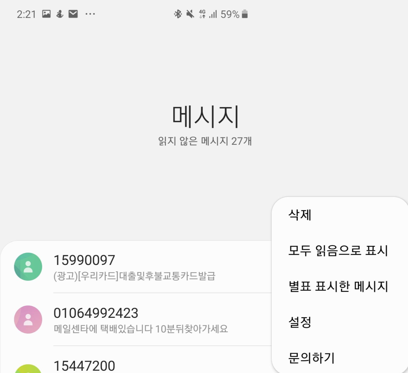 2. 우측에 보이는 "점점점" 을 누르고 메시지 어플 설정으로 들어갑니다.