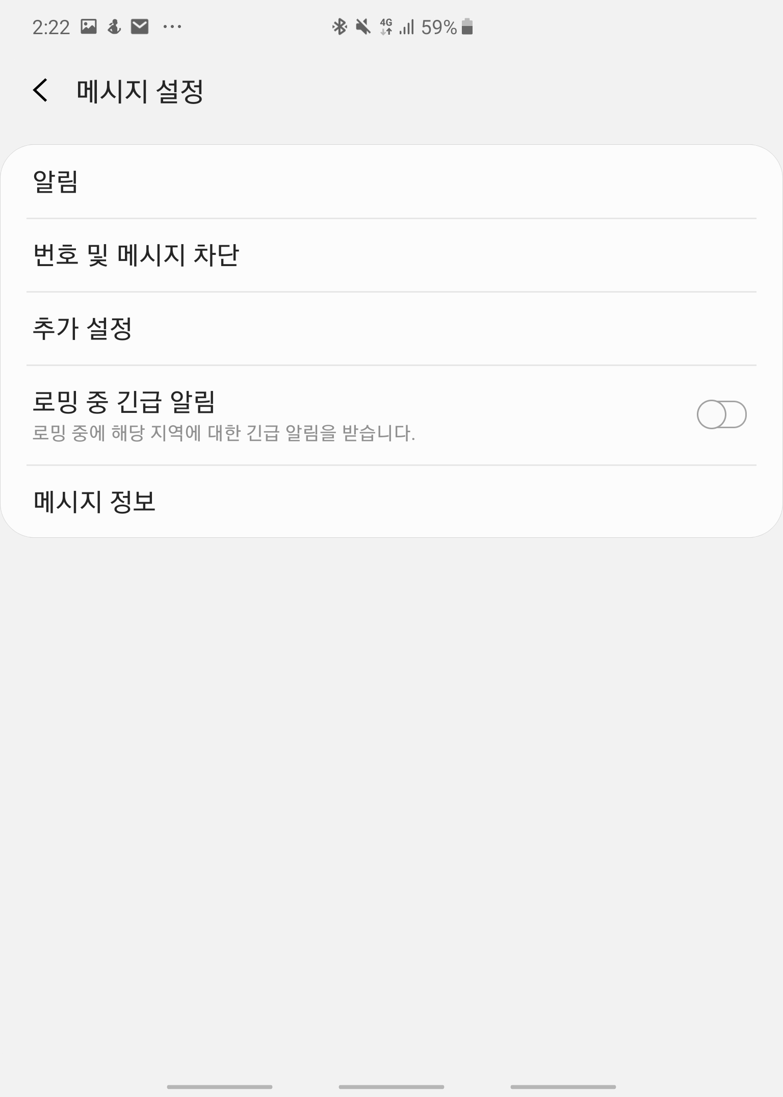 3. 로밍중 긴급알림을 꺼줍니다.