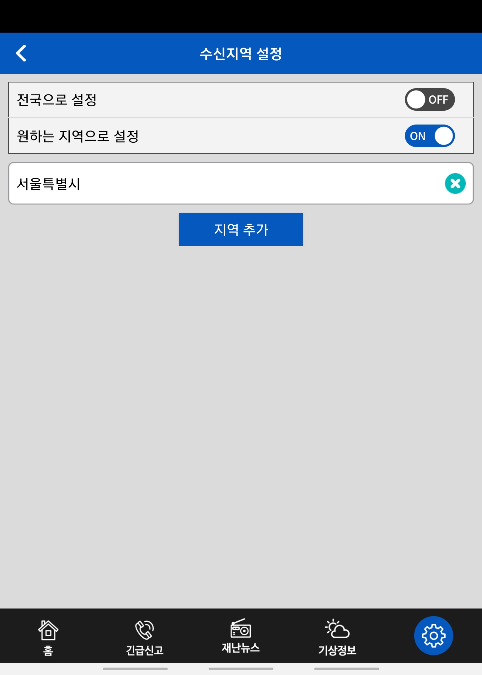 9. 원하는 지역으로 설정을 켜주시고, 사는 동네로 잡아줍니다.