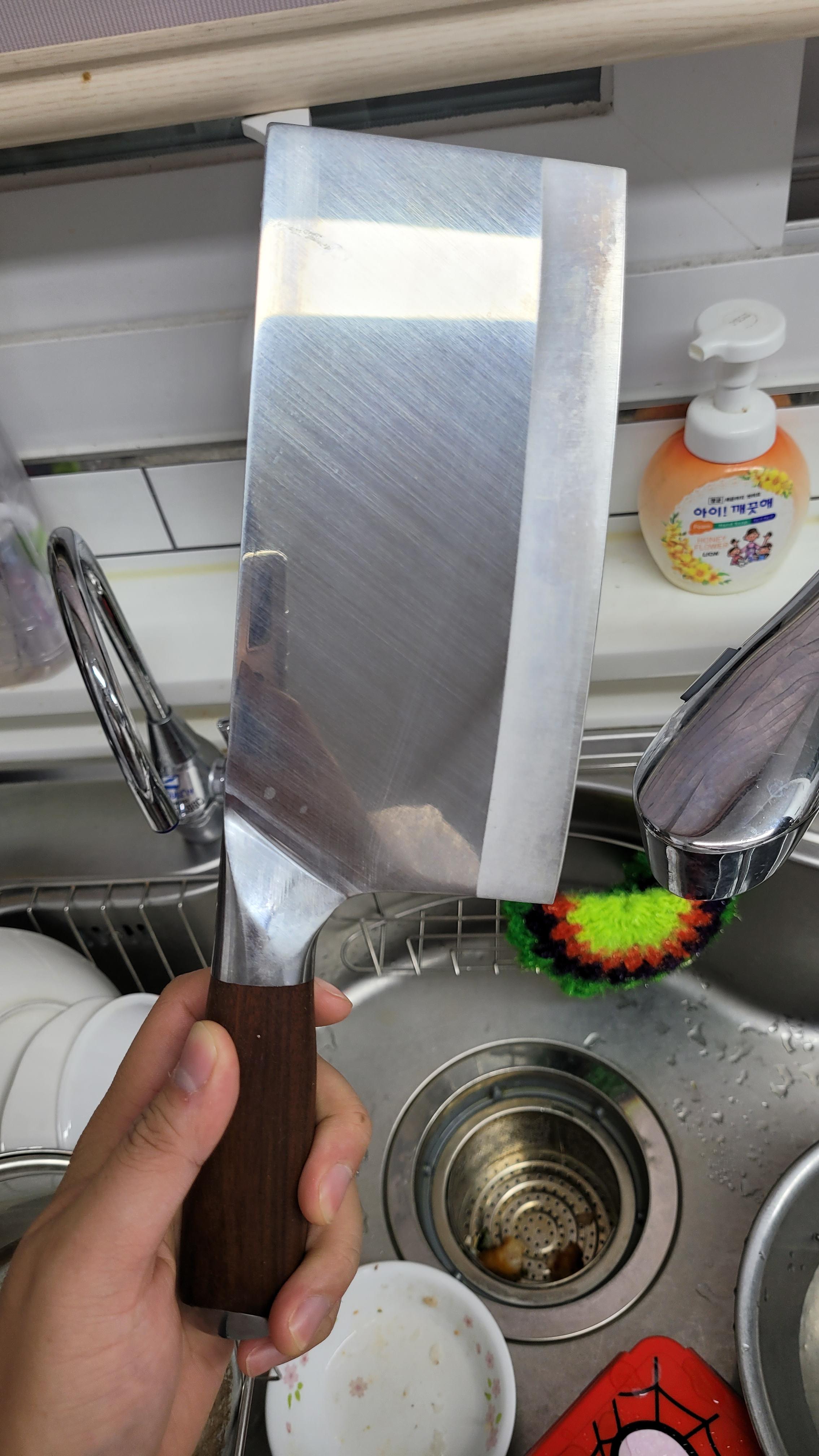 중식도 전용 거치대도 있긴 하던데, 지금은 일단 대충 던져놓고 있으니 날이 점점 얼룩이 생기는것 같기도 합니다.