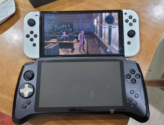 크기 입니다. 7인치 화면 덕분에..매우 커보이지만,, 스위치OLED와 비교하니 또 그렇게 커보이지도 않네요.