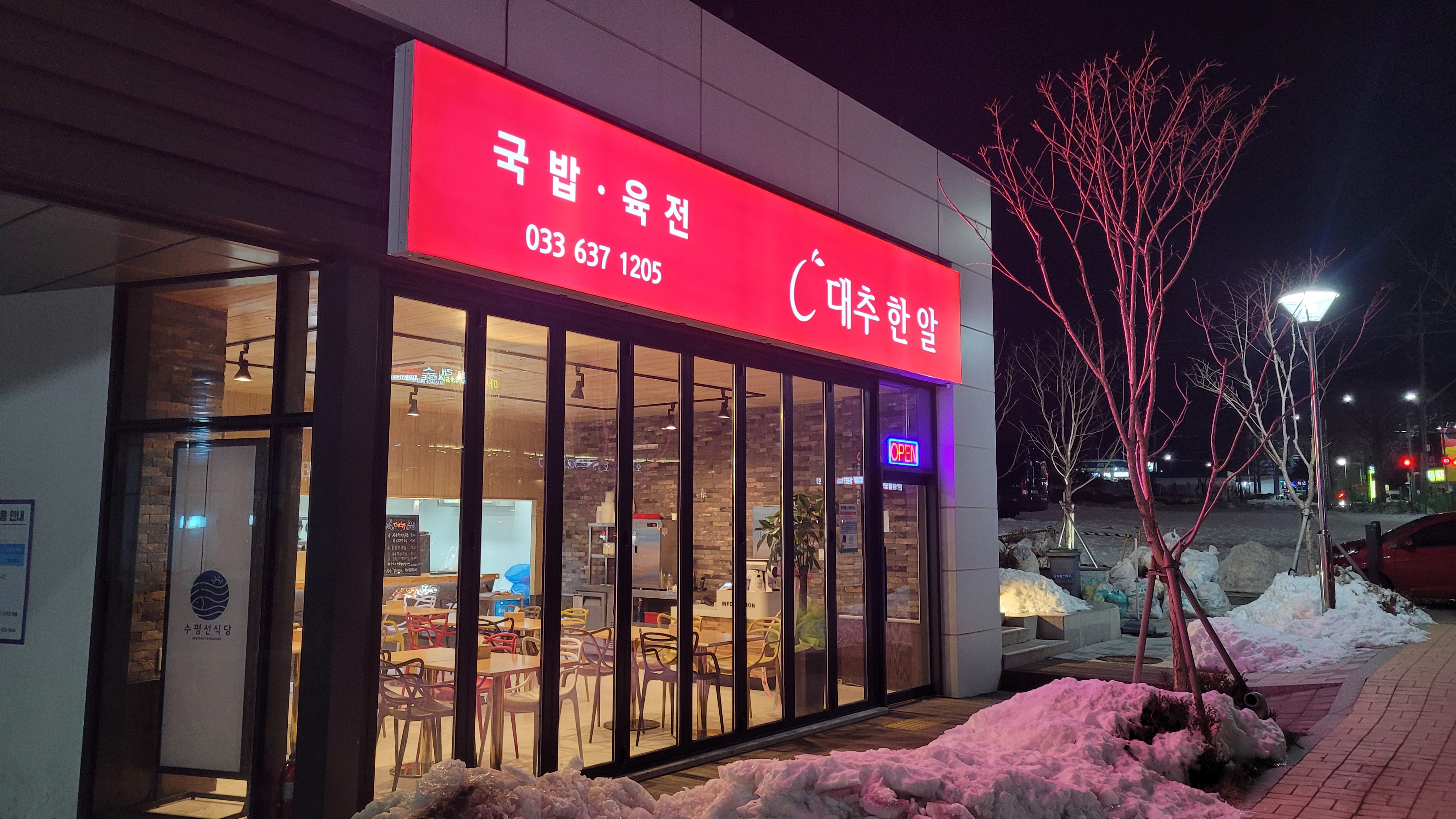 속초에 20년만의 대설이 오던 날.. 눈이 너무 인상적이어서, 레스토랑에서 바깥 눈풍경만 찍다가 정작 실내 사진은 찍질 않았네요..;;