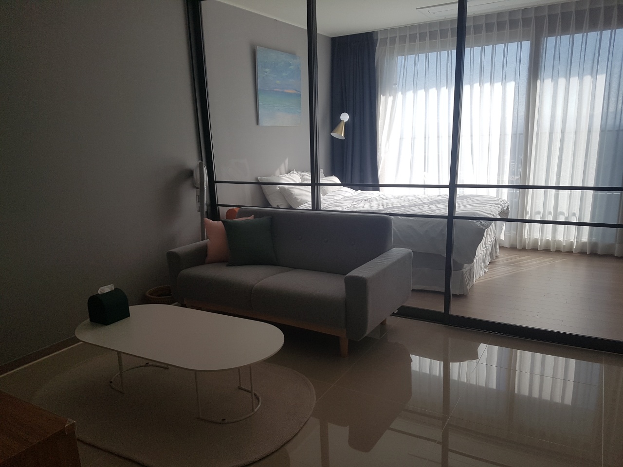 1.5룸 구성이라서, 중간 슬라이딩 도어를 닫으면, 2룸으로 사용 가능합니다.^^