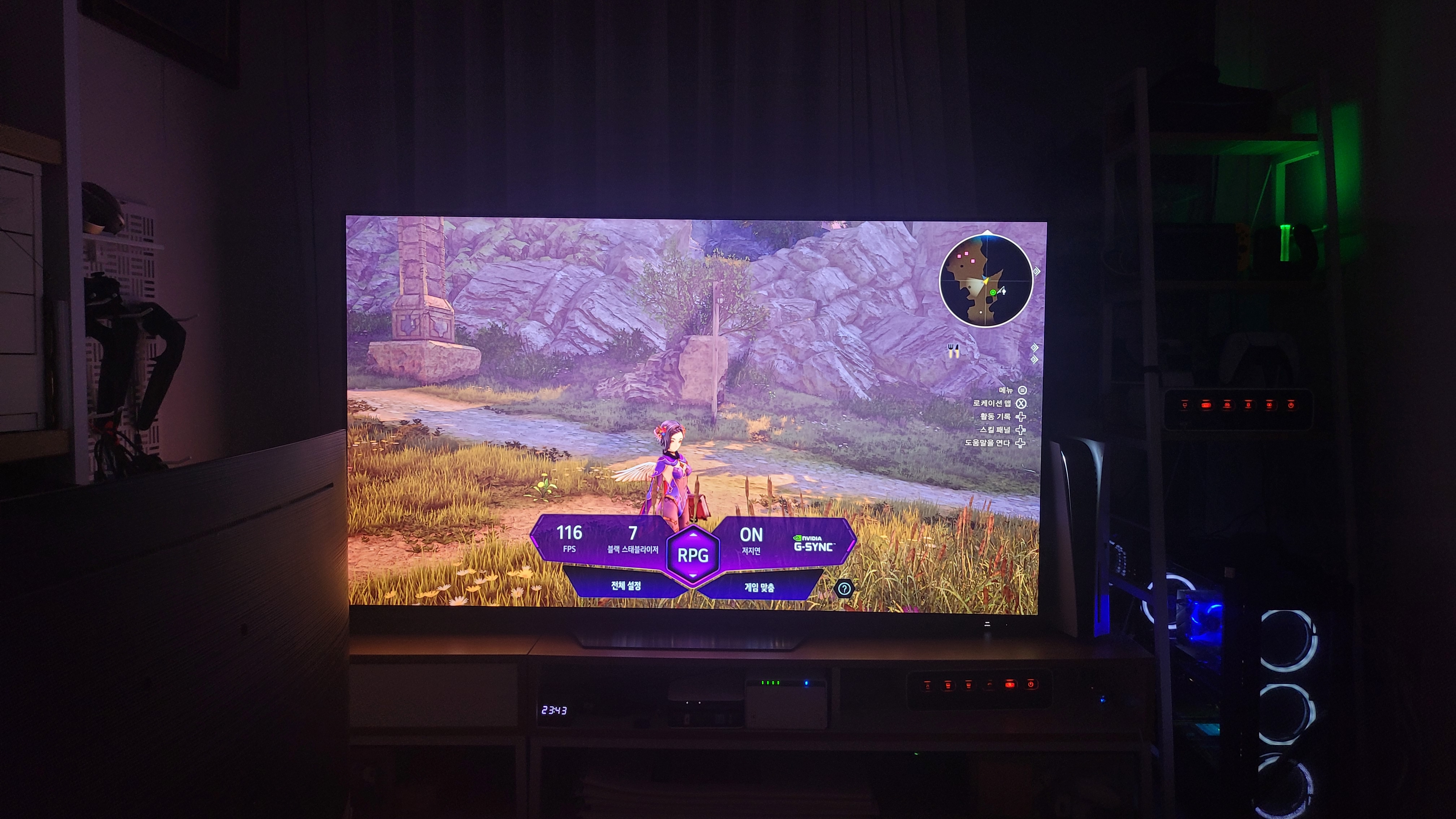 새로 바꾼 그래픽카드 RTX3080과 맞물려서.. 4K 120Hz가 퐝퐝 돌아가네요. 매후 만족스럽네요.