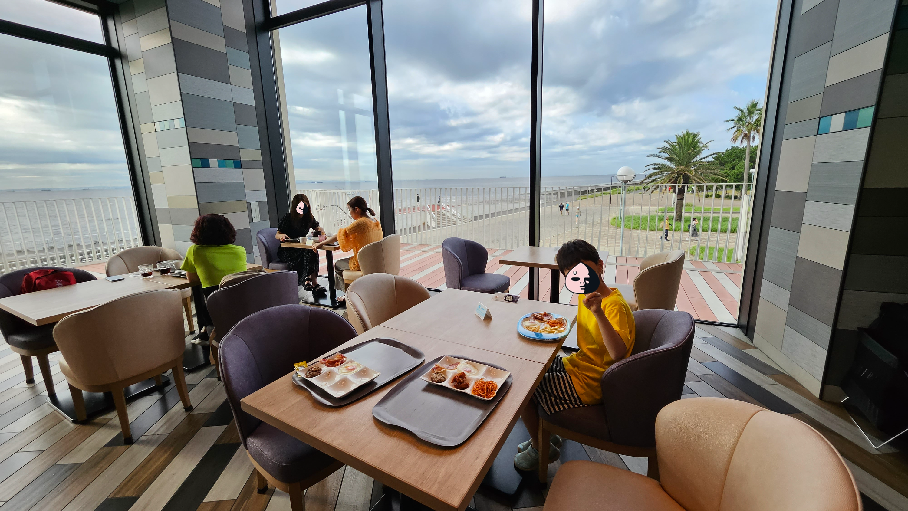 붐비지 않은 시간에 가서 모서리 자리에 앉으니,, 파노라마 오션뷰 자리네요 ㄷㄷ.. 아 반짝이는 바다를 보며 먹었던 아침밥은 돌아온 지금도 그립습니다.