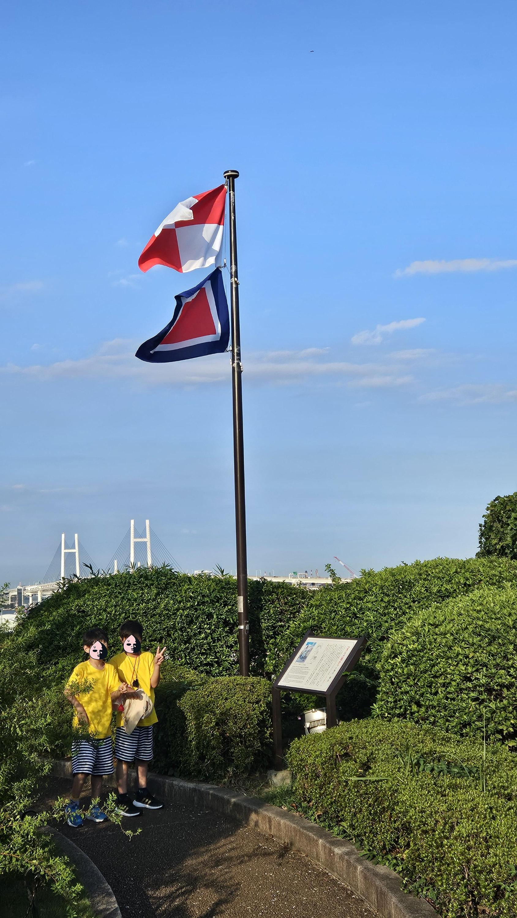멀리 보이는 요코하마베이브리지를 배경으로 찰칵!!📷📸📷📸