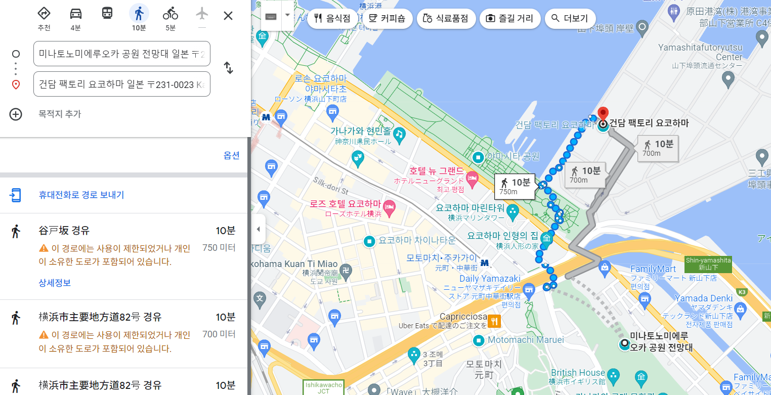 이제 야마시타 공원을 거쳐서 건담베이스로 갑니다.