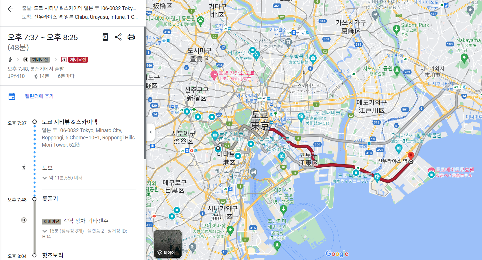 히비야선을 타면 좀 짧게 걸린다고 나오지만, 지하철의 프로답게 최소환승 마루노우치선으로 바로 갑니다 ㅋㅋ