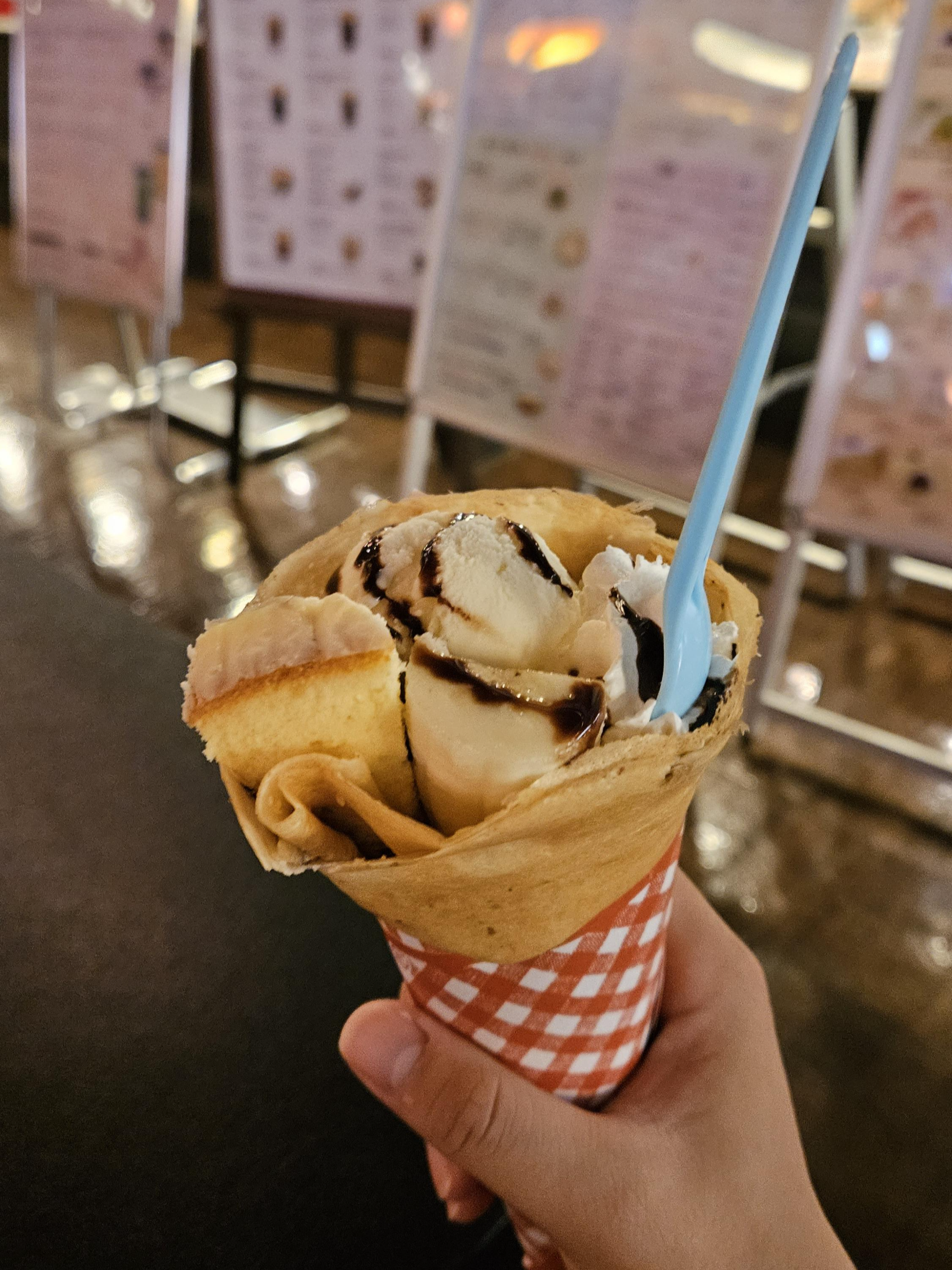 나와서 아내를 기다리는 동안 도쿄명물 크레페를 로비에서 사봤습니다.