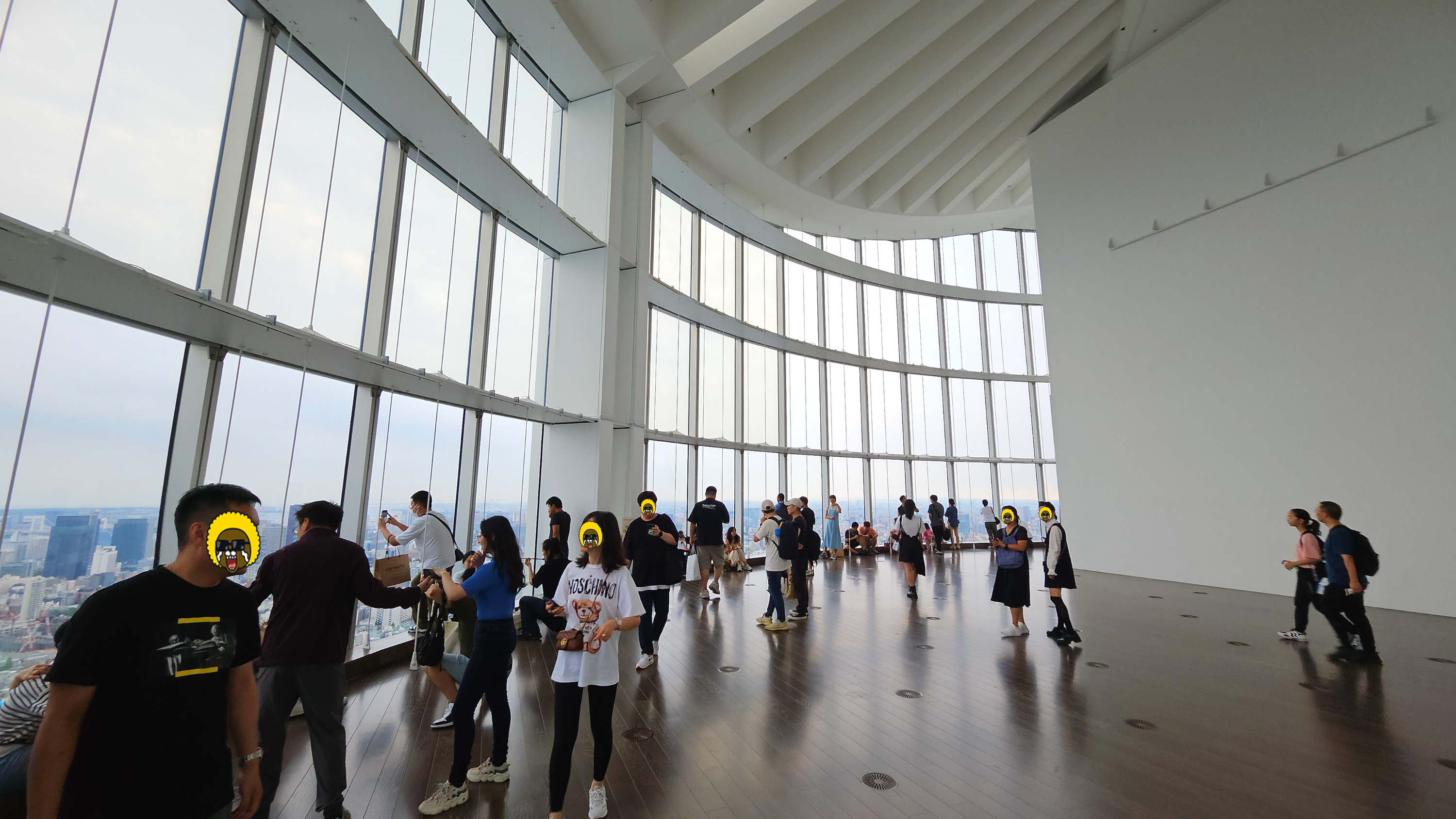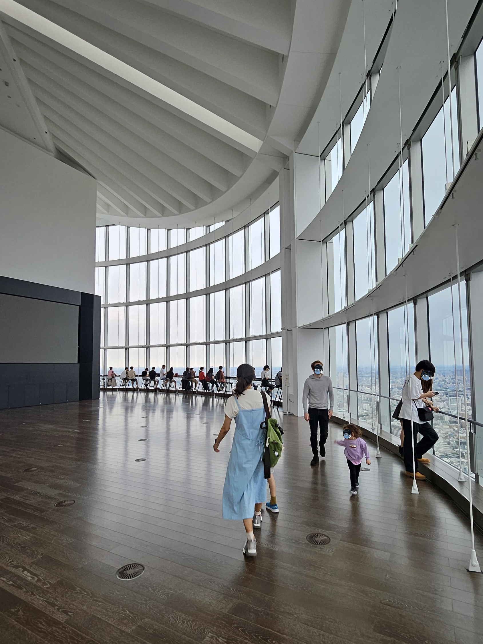 올라오니 높은 층고와 넓은 공간, 맑은 도쿄 전망이 맞아주네요.