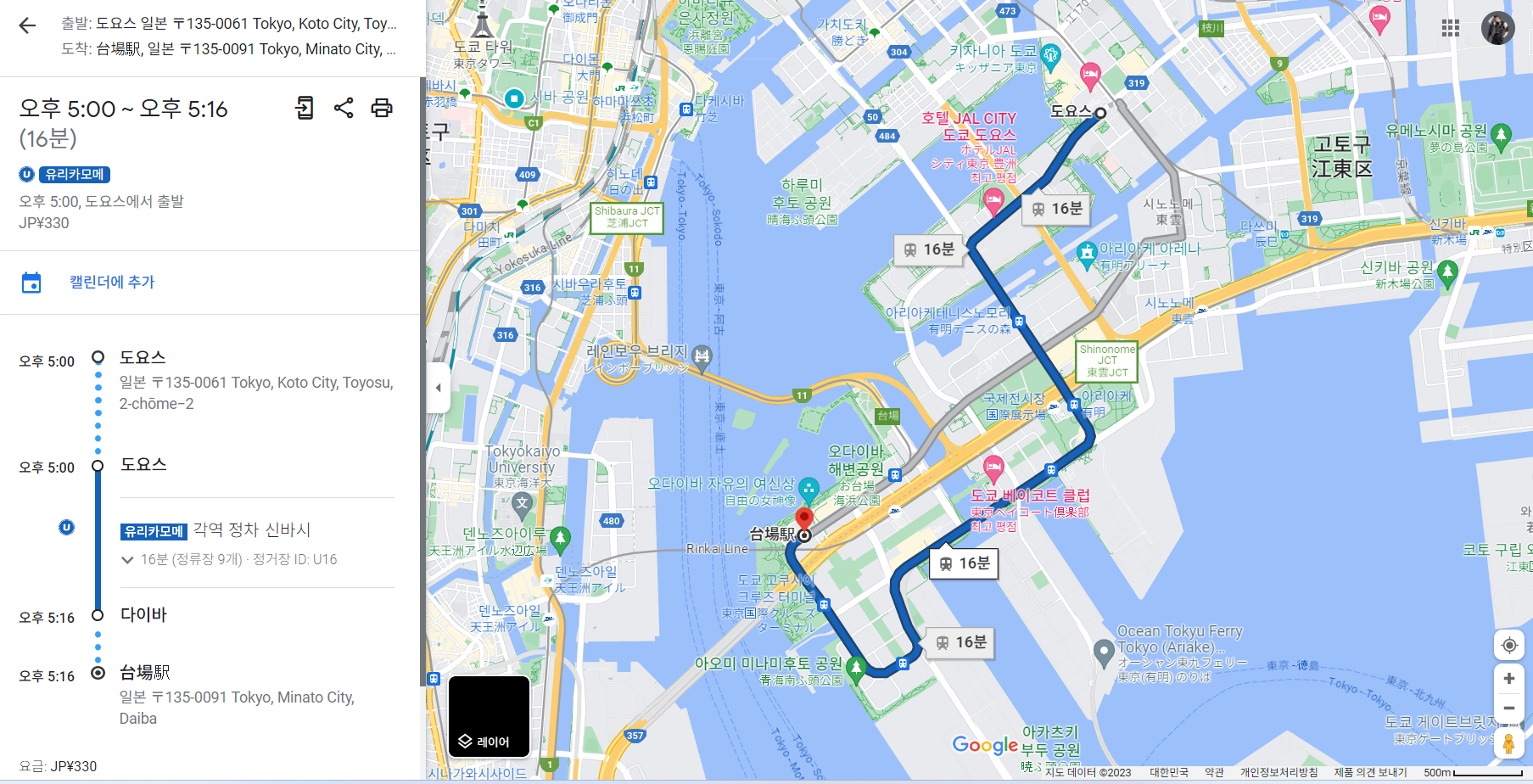 시간 여유가 있다면, 레인보우브릿지 건너편까지 갔다가 그대로 돌아와도 괜찮을 것 같습니다.
