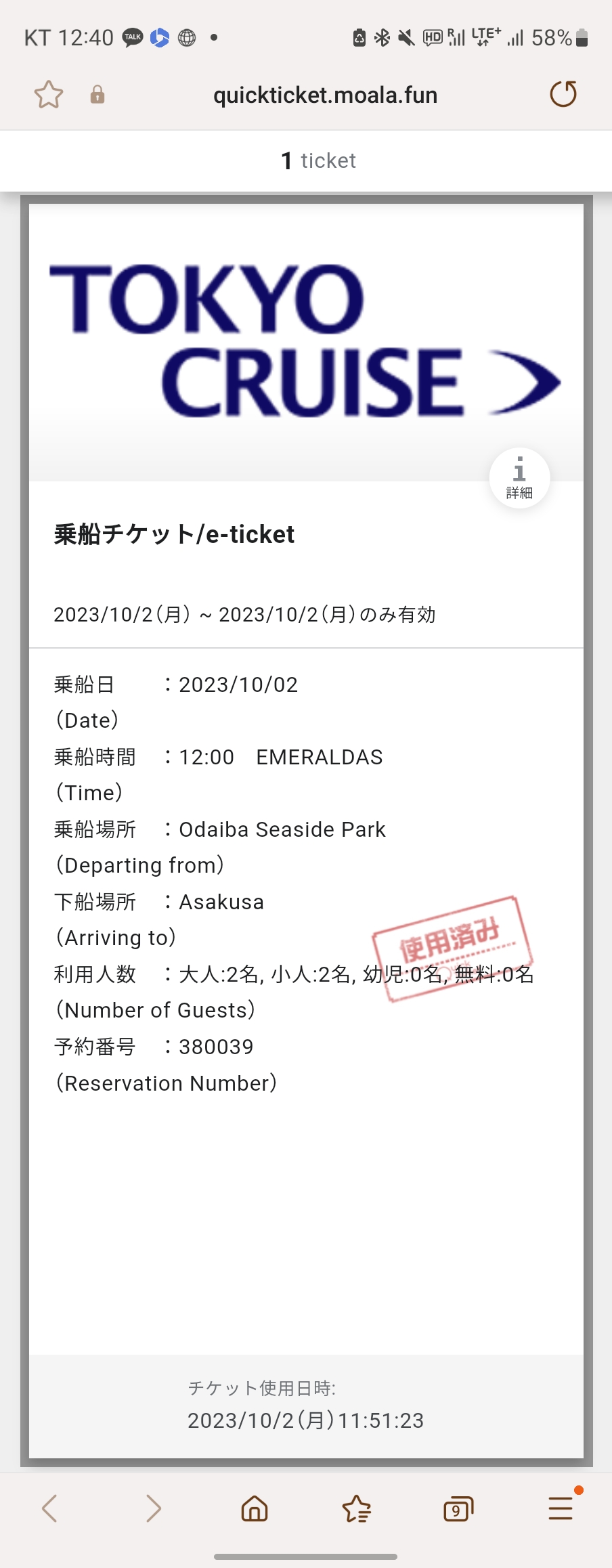 다만.. 배를타기 직전까지는 아무것도 나오지 않다가, 승선 시간이 되면 귀신같이 티켓이 화면에 뜹니다 ㅋㅋㅋ