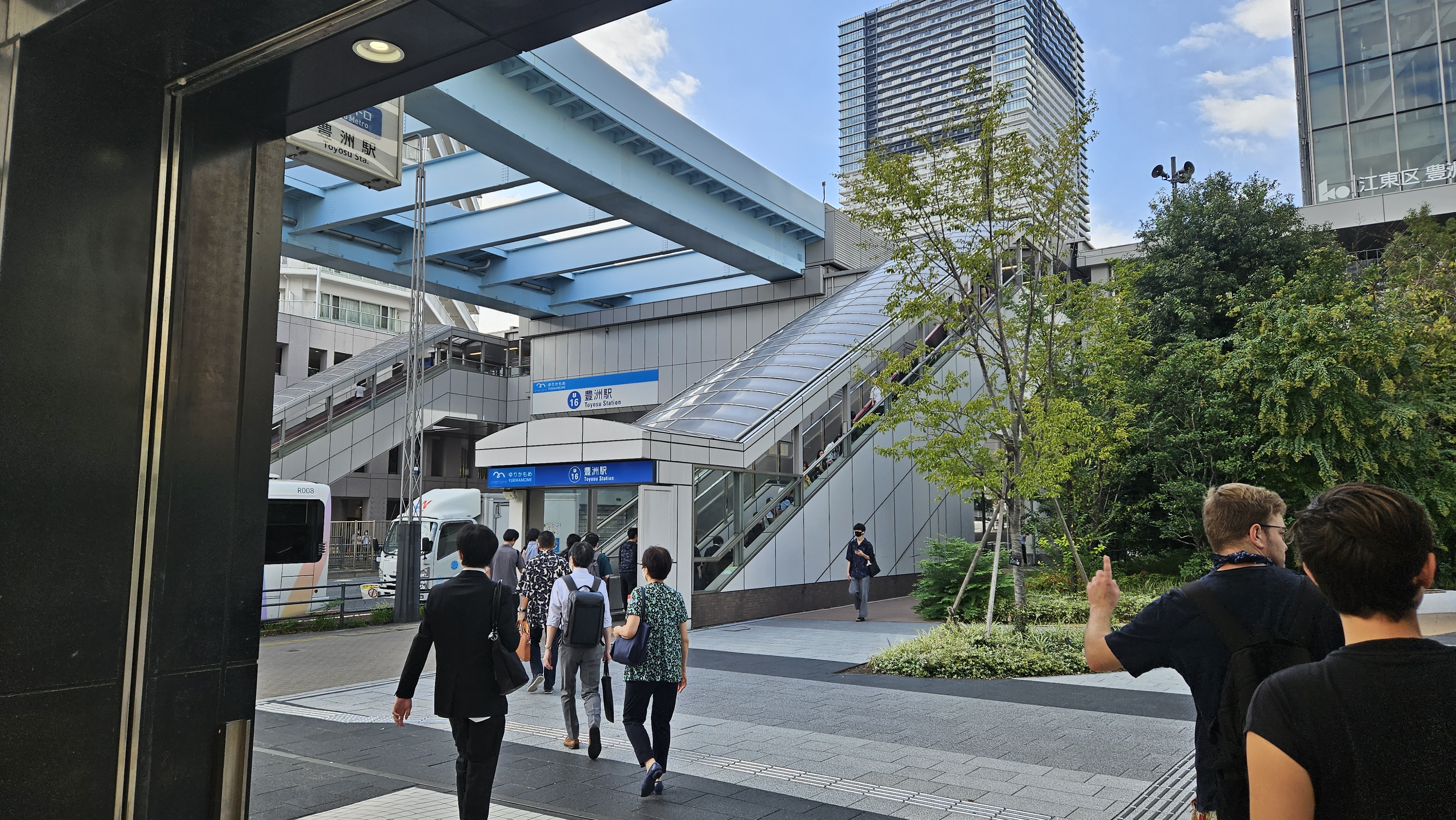도요스역을 거쳐서 무인 모노레일 유리카모메 선을 타기로 합니다.
