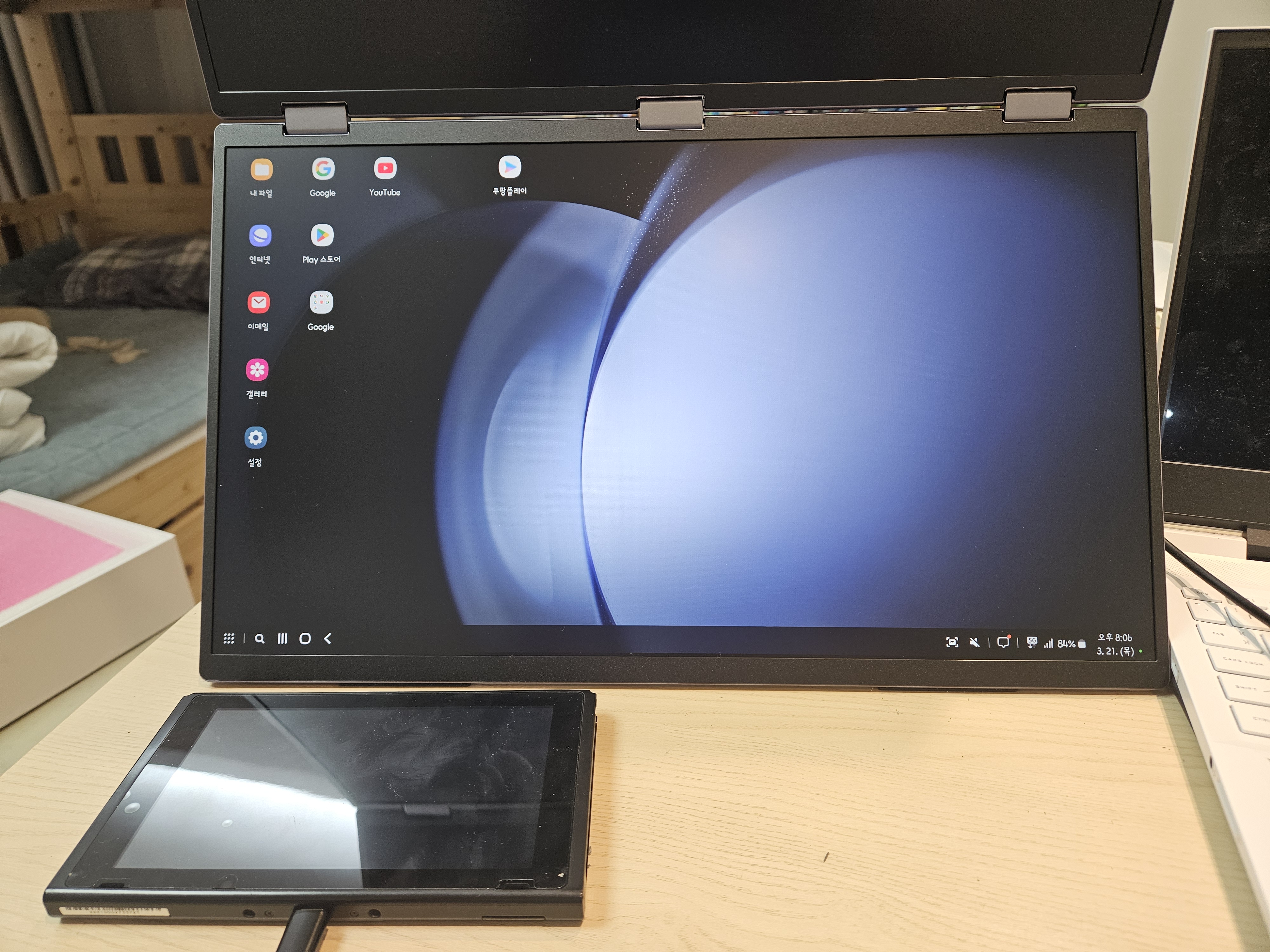 닌텐도 스위치나 삼성DEX를 연결하면 아래 모니터만 동작합니다.