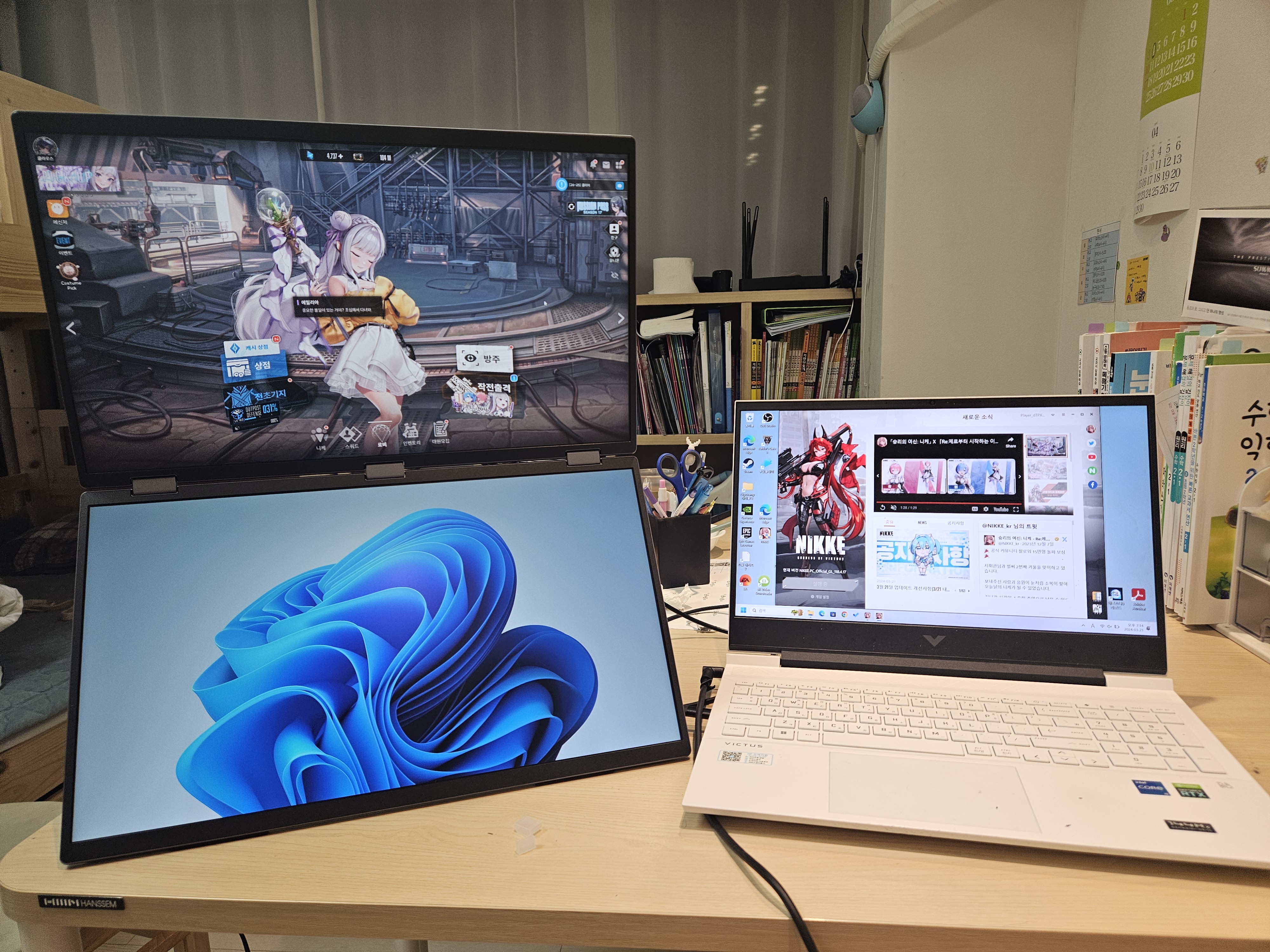우측은 HP VICTUS 16으로 16인치 모니터, 300니트 밝기 입니다.
