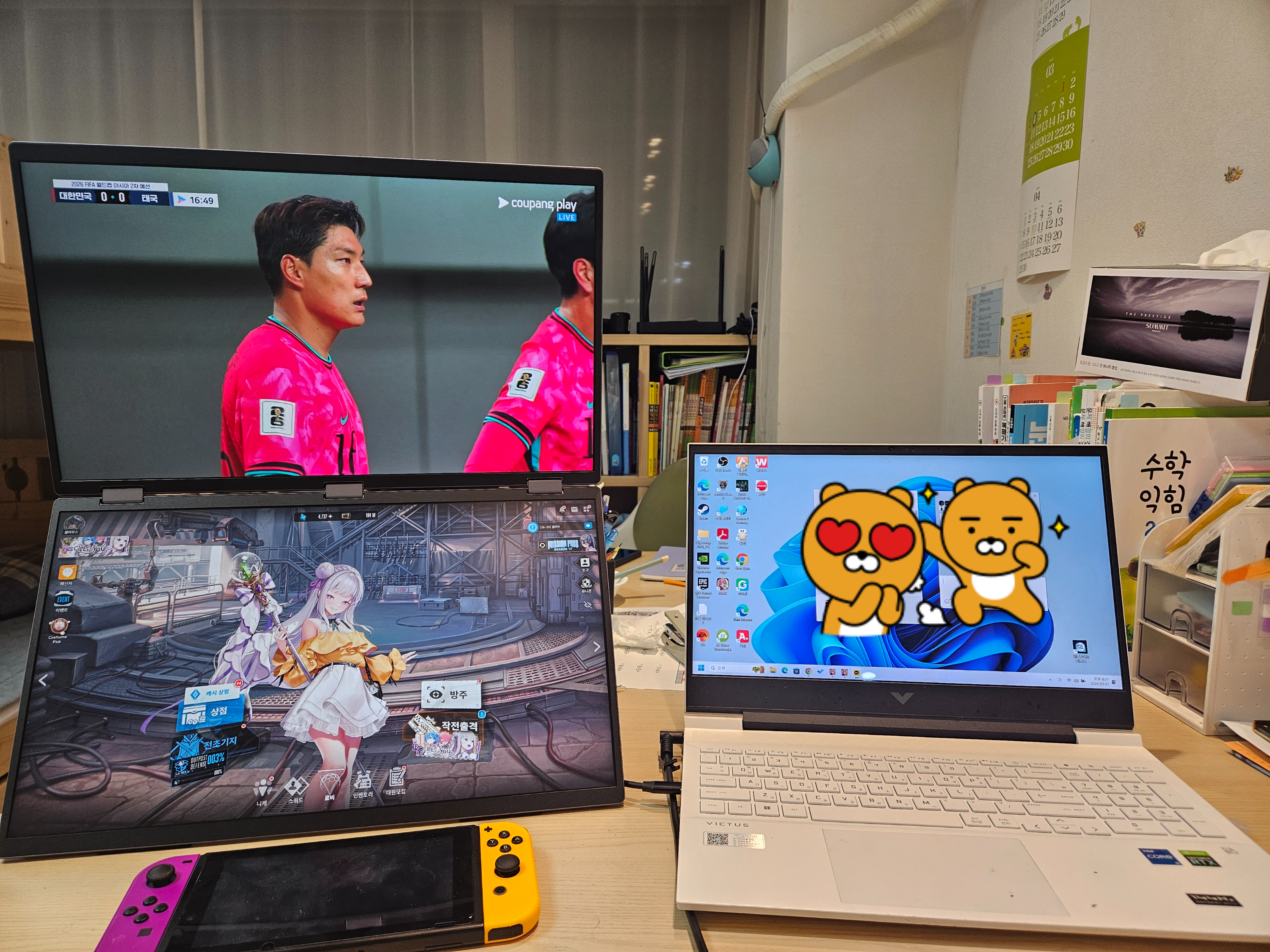 짜잔~ PC와 연결하면 바로 두개 모니터 모두 잘 나옵니다.