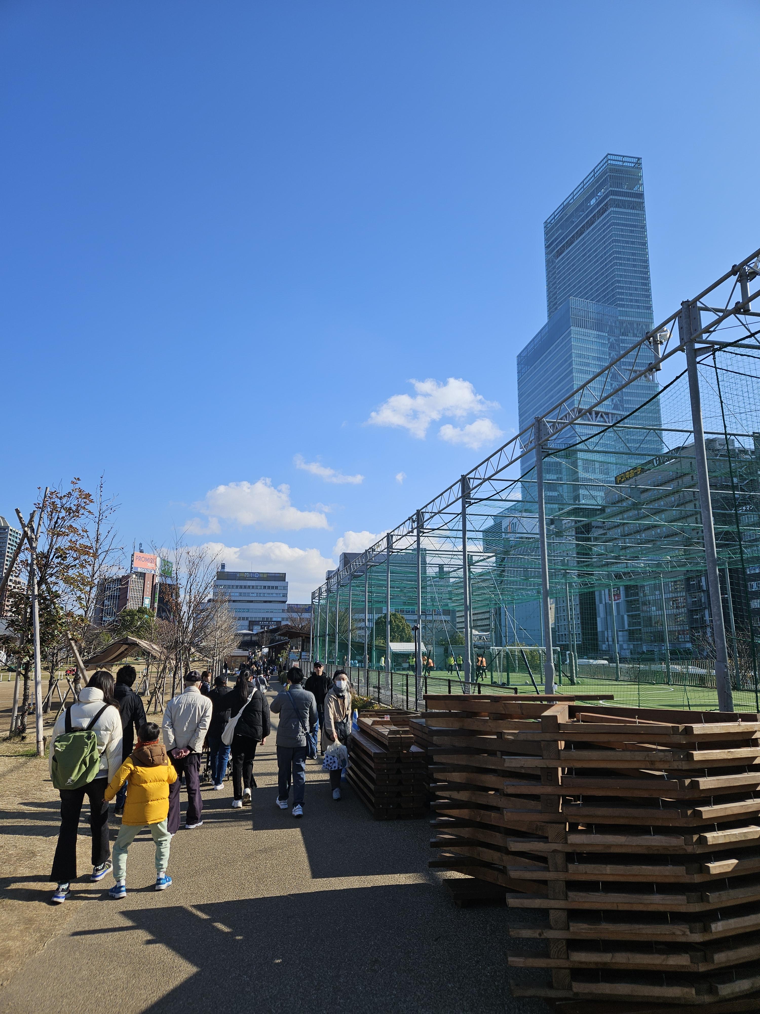 멀리 아베노 하루카스를 향해 덴노지공원을 횡단합니다.