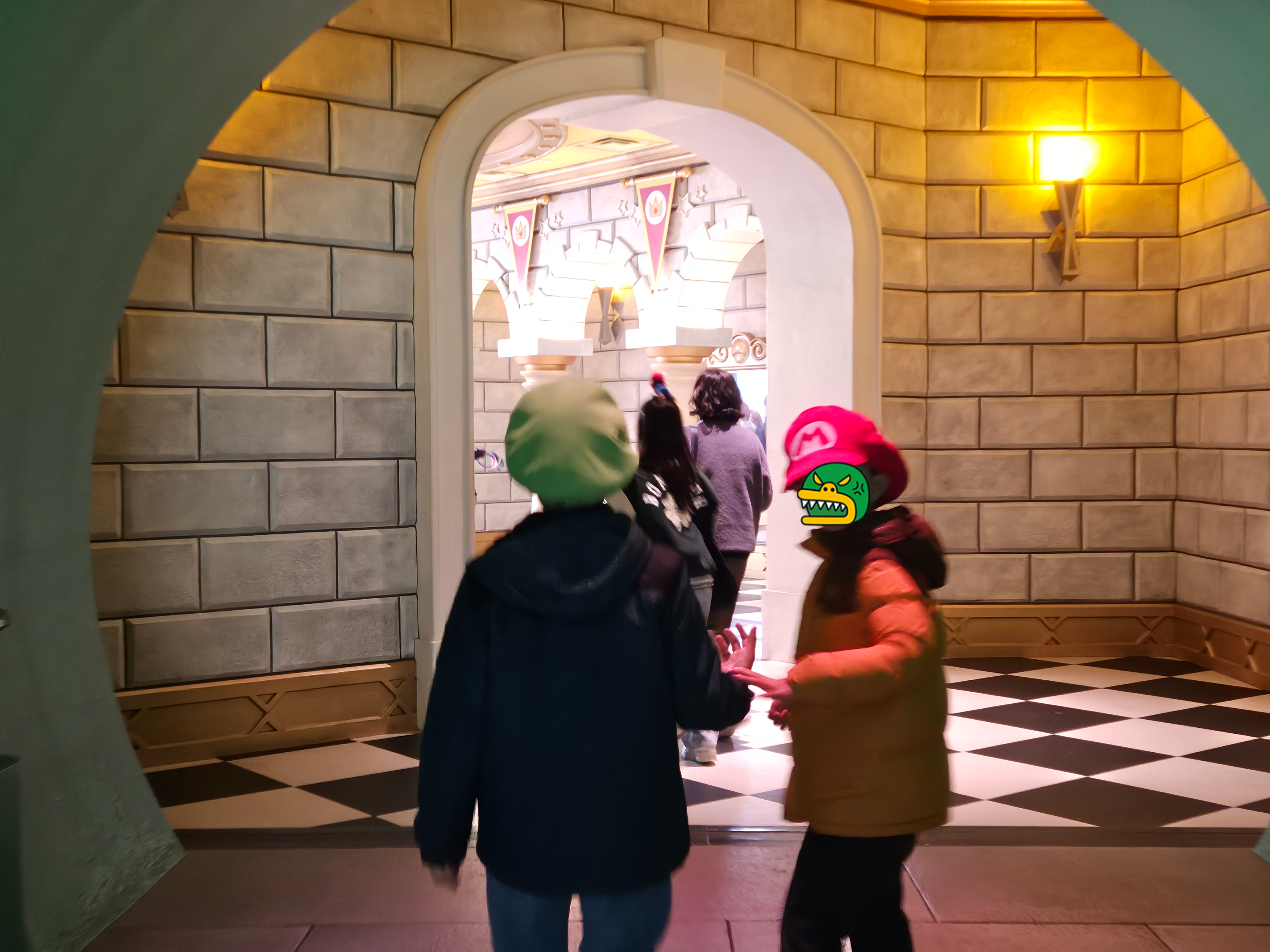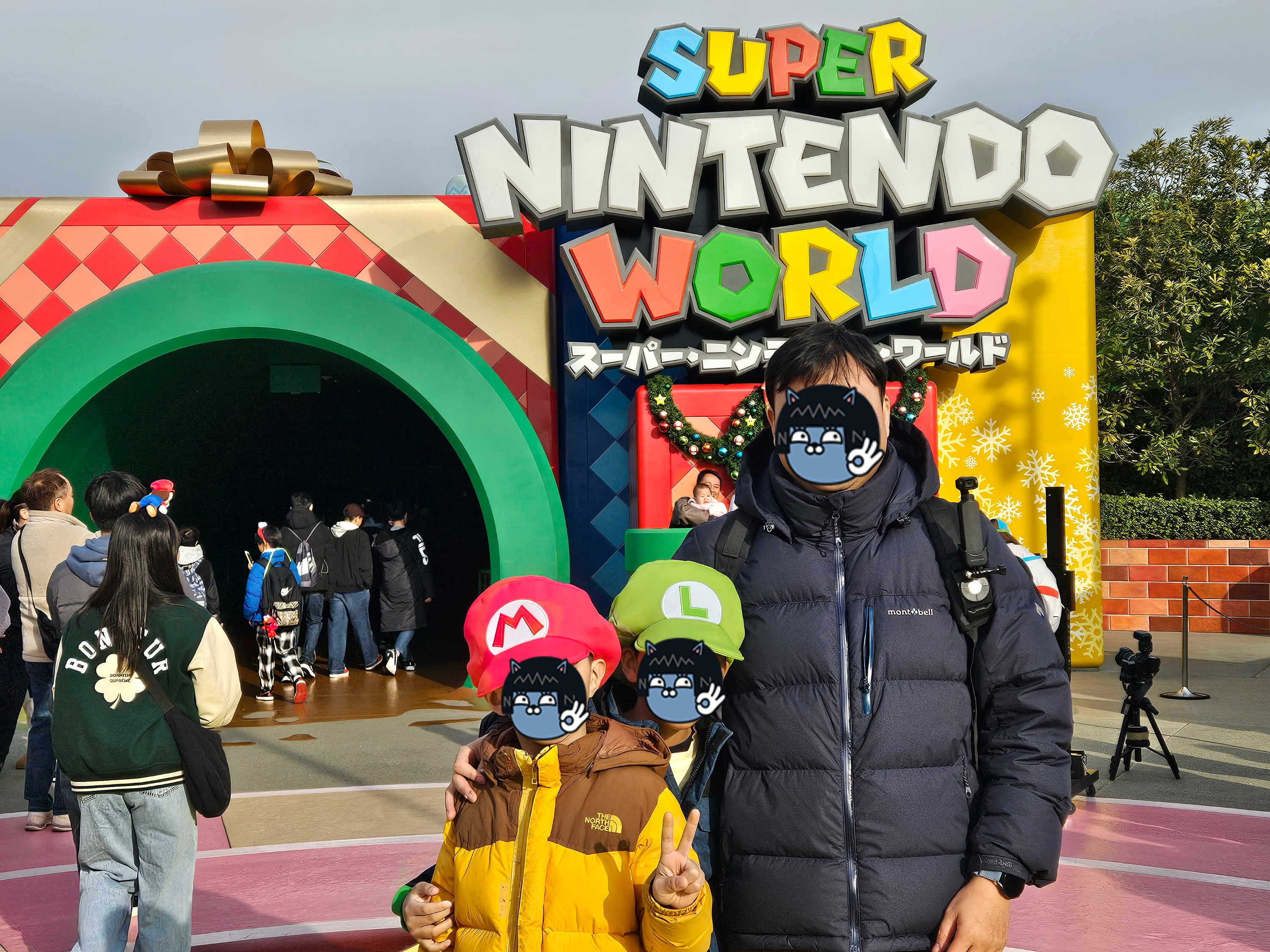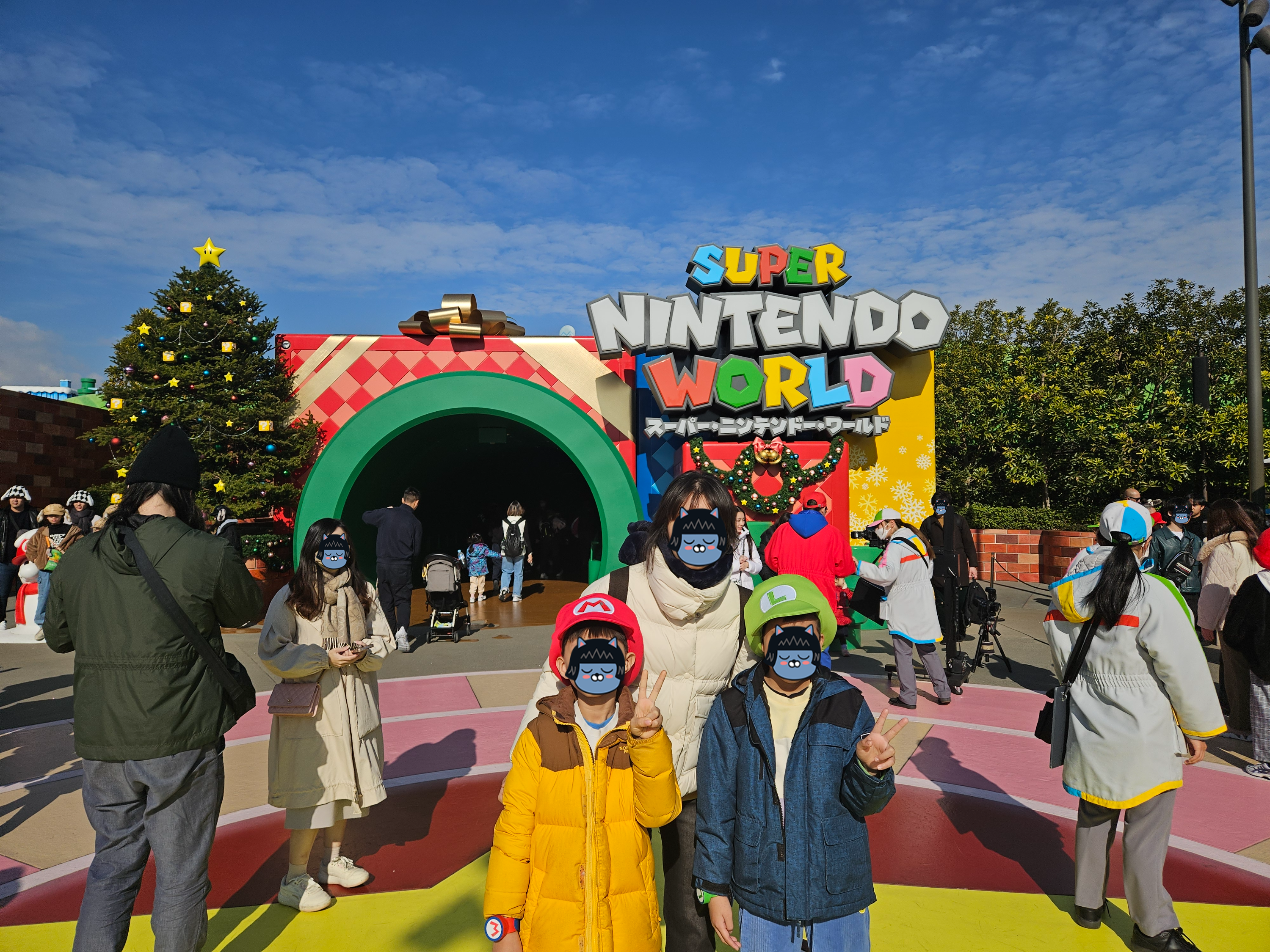 어제 우메다 닌텐도에서 미리 구매한 마리오 루이지 모자를 쓰고 들어갑니다.