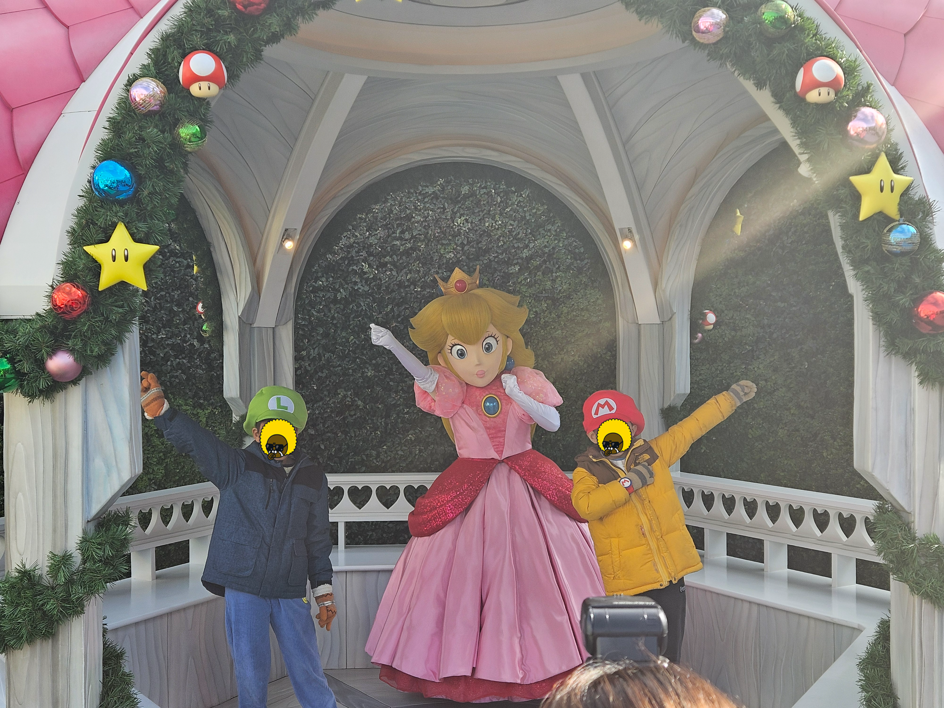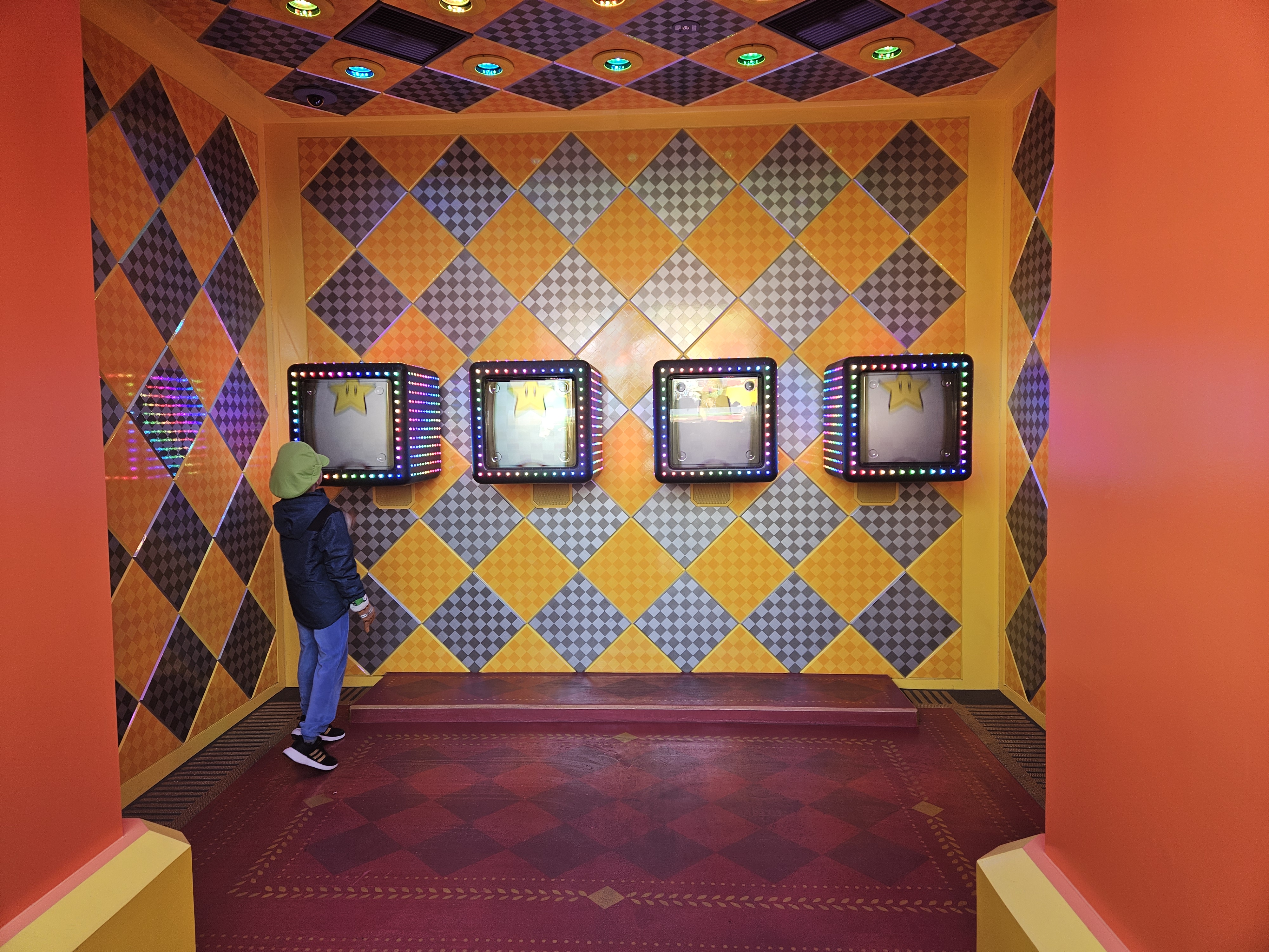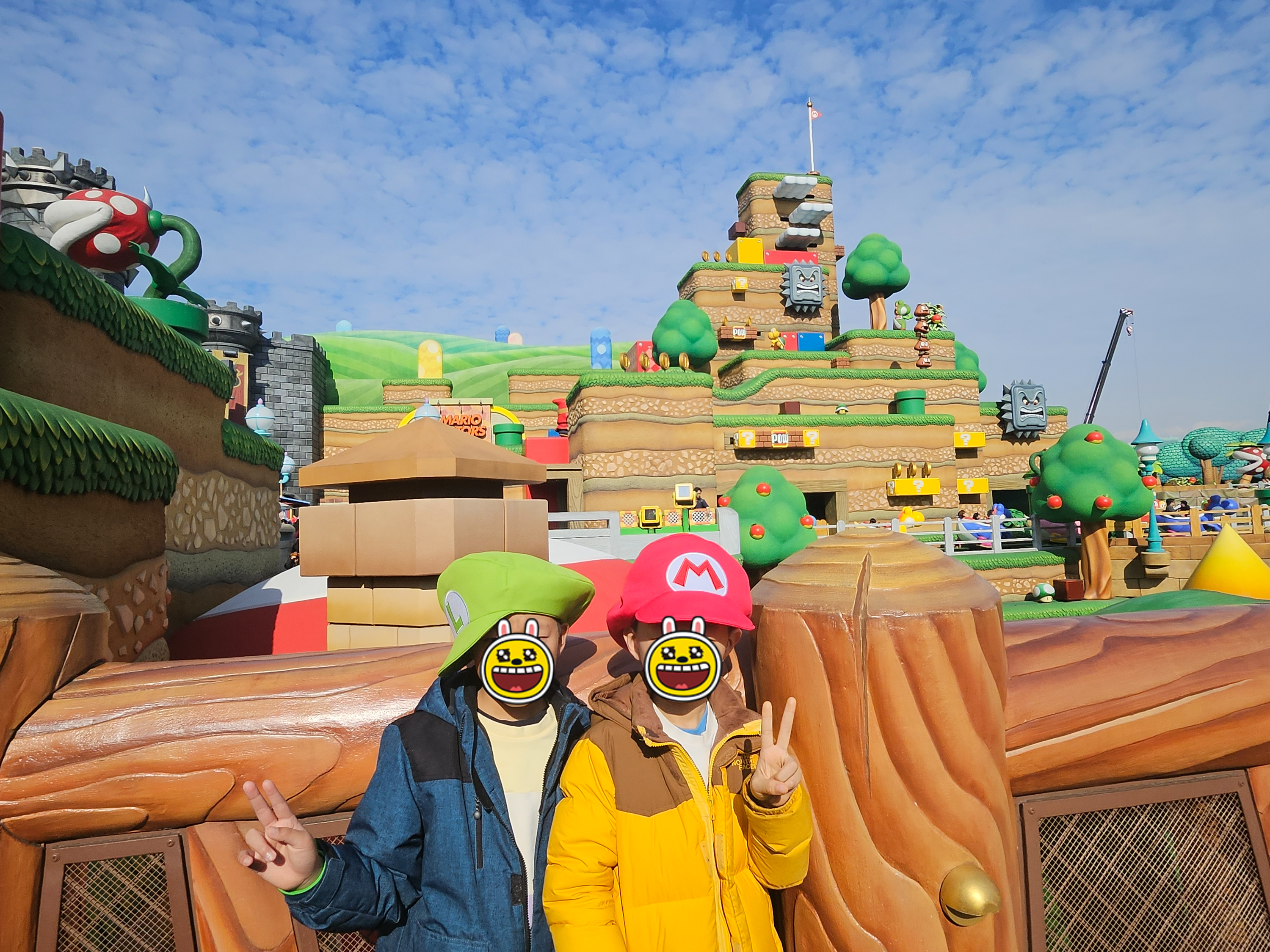 어제 우메다 닌텐도에서 미리 구매한 마리오 루이지 모자를 쓰고 들어갑니다.