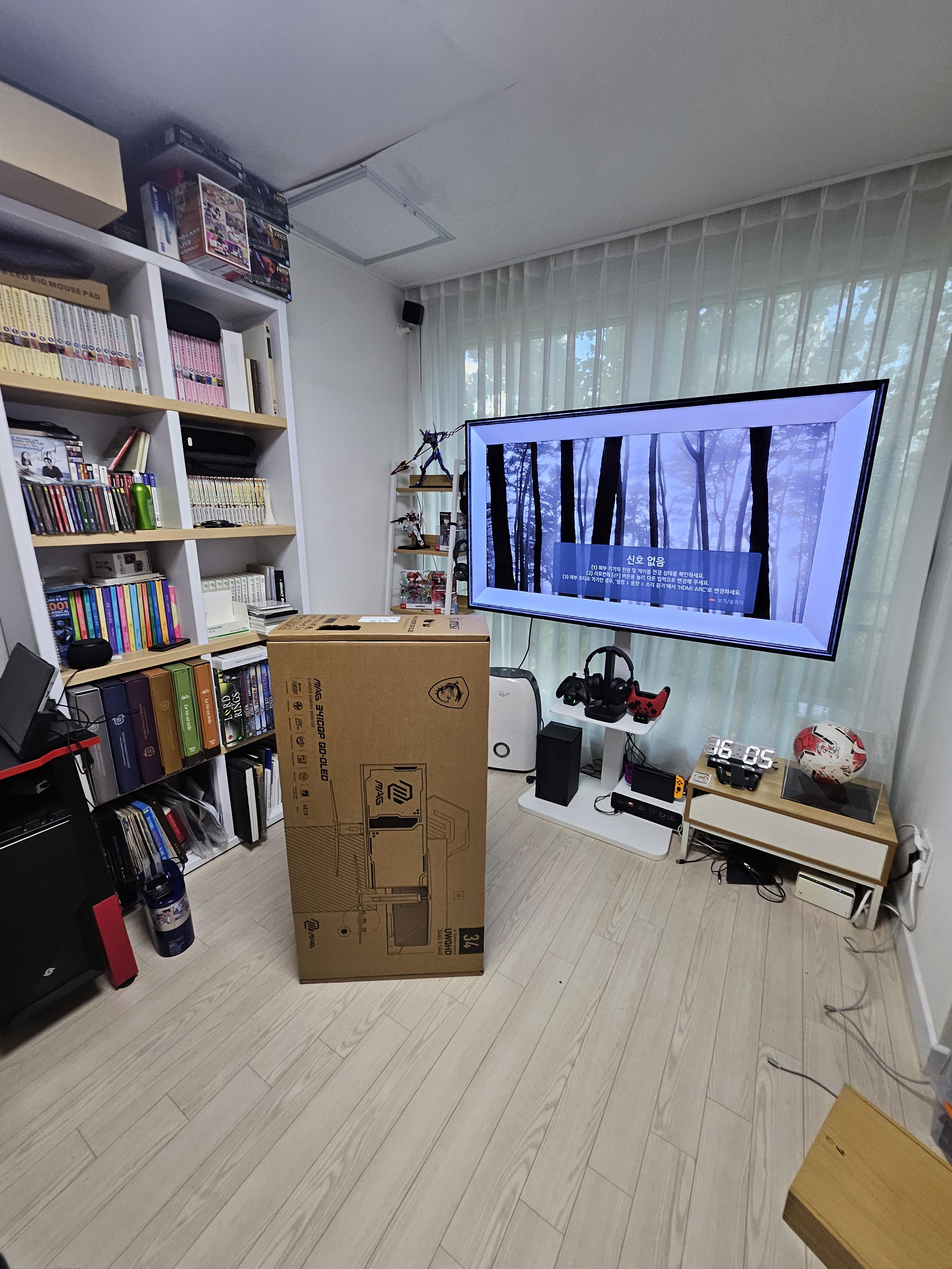 뒤에 보이는 TV가 64인치인데요.. 34인치 울트라와이드모니터 박스크기가 64인치 티비만 합니다..