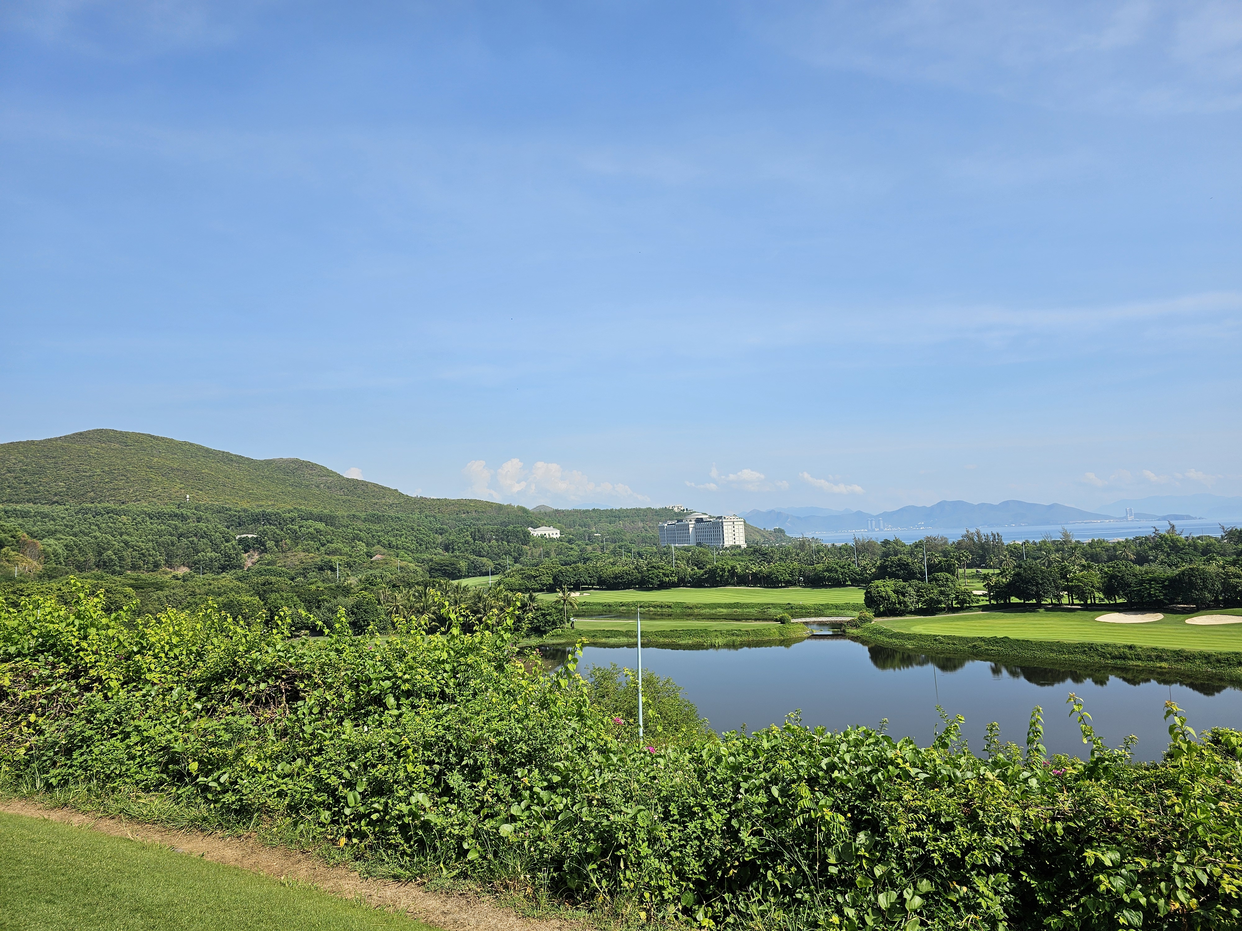 멀리 바다가 보이는,, 높은 곳에서 시작하는 티샷이었네요. 혼째섬이 한눈에 들어오는 멋진 코스였습니다.